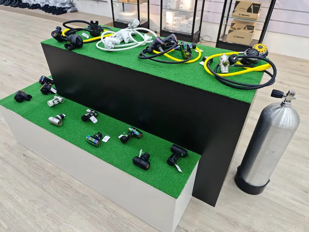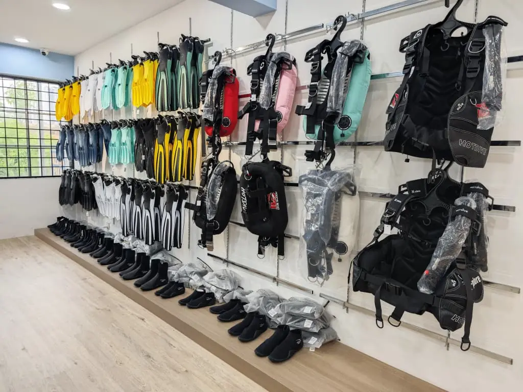Our shop features a wide range of scuba diving equipment, including regulators, BCD jackets, dive computers, masks, fins, snorkels, wetsuits, rashguards, tanks, and buoyancy accessories—all sourced from reputable brands known for durability and reliability. Whether you are a beginner completing your first PADI course or an experienced diver upgrading your setup, we provide gear that meets every budget and skill level.